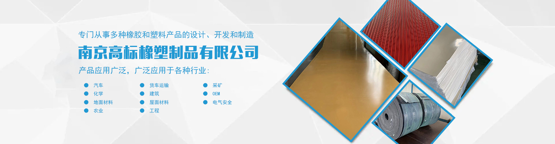 南京高標橡塑制品有限公司是一家專業(yè)的橡膠板、橡膠制品和熱塑性塑料產(chǎn)品的制造商。主營產(chǎn)品:三元乙丙橡膠板,丁腈橡膠版,氯丁橡膠板,丁苯橡膠板,丁基橡膠板,天然橡膠板,硅橡膠板,氟橡膠板,絕緣,防靜電,導電橡膠板,夾布,夾金屬網(wǎng)橡膠板,耐酸堿橡膠板,耐油橡膠板,耐磨橡膠板,阻燃橡膠板,阻尼橡膠板,減震橡膠板,防滑橡膠板,橡膠墊片等。 高標橡塑專門從事多種橡膠和塑料產(chǎn)品的設計、開發(fā)和制造。我們的產(chǎn)品應用廣泛。廣泛應用于各種行業(yè),包括:汽車,貨車運輸,采礦,化學,建筑,OEM,地面材料,屋面材料,電氣安全,農業(yè),工程等。 高標橡塑的客戶服務于許多行業(yè),包括墊片切割、分銷商、工業(yè)用品零售商和批發(fā)商。自